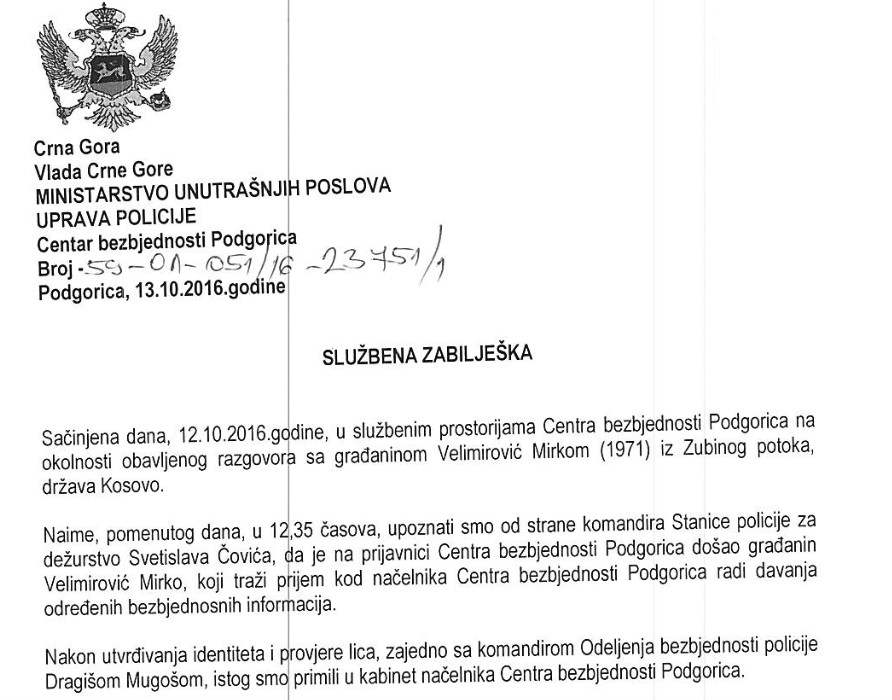 Дакле, Велимировић тврди у полицији тврди да не може да набави тражено оружје. Иначе, ову забиљешку је потписао озлоглашени тровач народа из октобра 2015. године, Јовица Речевић. Шта се дешава након исказа који је Велимировић дао у полицији? По његовом исказу у судници, Катнић га је инструирао да оде на КиМ, да тамо купи оружје, али да га потом одмах уништи! Да ли се оваквом упуству може удахнути било какав смислен разлог? И при том, Велимировић је на суђењу тврдио да је било ”прекратко време”, па није чак ни успио да слика купљено оружје.