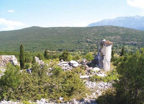 Црква св. Илије је на вршини, око ње се сукобе вихори, и под њом разбијају валови стравичном хуком. С тог красног положаја лети поглед чак до Корчуле и до арбанаског Драчког Рта. Црква је овелика и зидана савим брижљиво. Има звоник на преслицу са три окна, а два звона, полукружну апсиду и округло кубе. Осим западних, имају врата и на сјеверном и јужном плану и полукружно сведени прозори, а украшена је и лезенама.