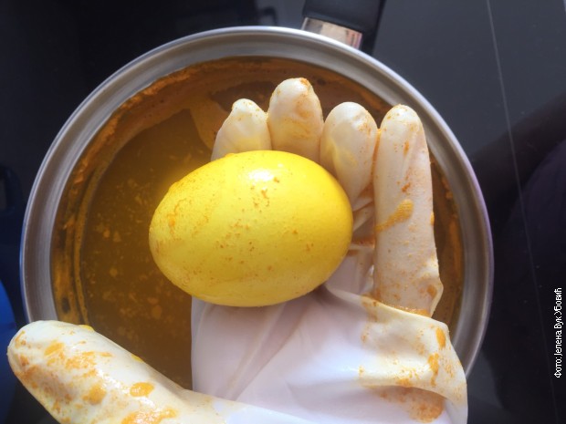 Што дуже јаја стоје у куркуми, то ће бити интензивнија бојаКада се јаја охладе, изгланцајте их уљем.
