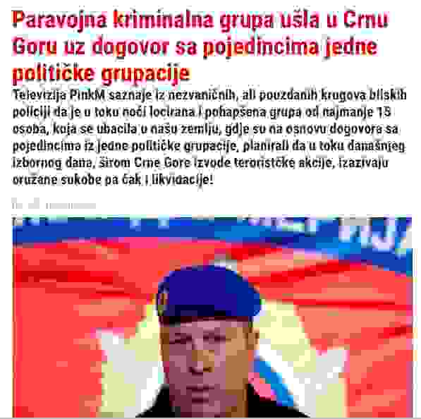 Како јавља више медија из Србије, ухапшена је ”паравојна група” на граници са Црном Гором. У насловима тих медија се издвајају кључне ријечи ”паравојно”, ”тероризам, ”Легија”, ”избори”… Очигледан је потпис наручилаца овог ”посла”, у ком на жалост, главну асистентску улогу играју безбједносне структуре из Србије и неколико контролисаних медија, међу којима предњаче они који су под контролом Бебе Поповића и црногорског премијера Мила Ђукановића.