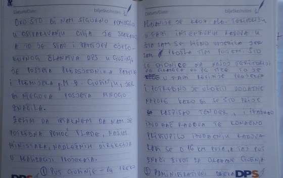 Дневник открива и да у Гусиње треба да дођу министри из реда ДПС-а како би обећавали новац за пољопривредне пројекте. Како је предвиђено у дневнику, у школи ће бити реализовано строго партијско запошљавање, а сва имена која се помињу у тим шемама налазе се на страницама дневника.
