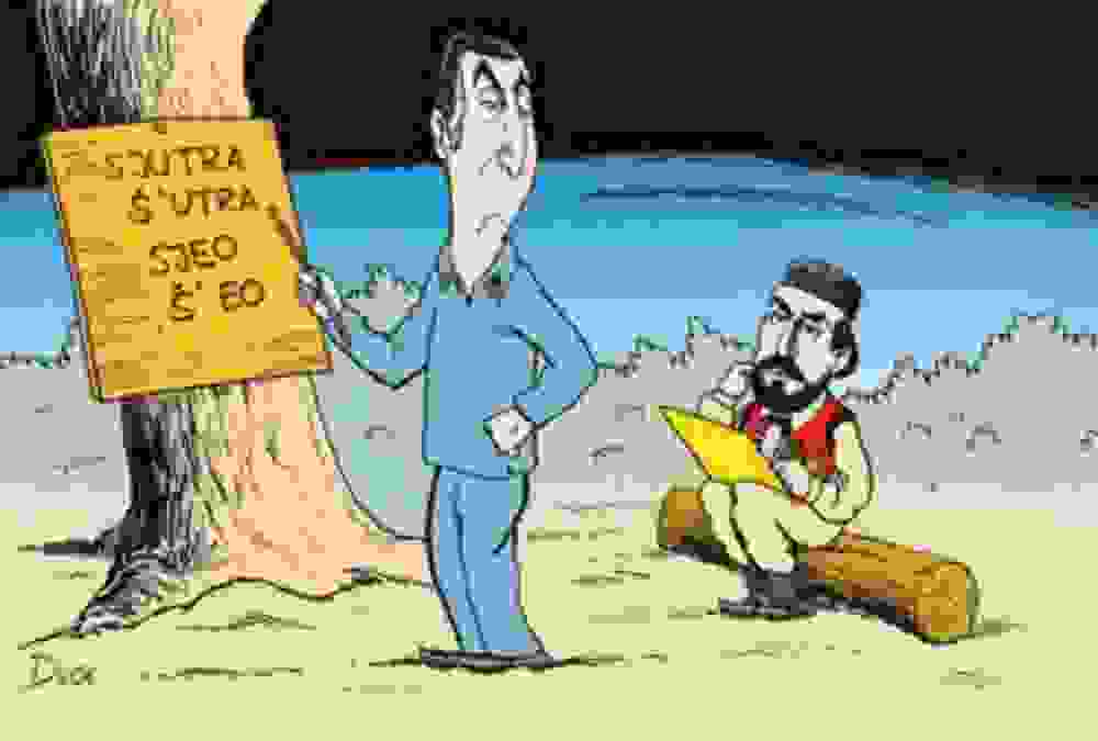 Vuk reče „Piši kao što govoriš“. I mi izbačismo: sjutra, sjeo, nijemac djed, medvjed, i počesmo da pišemo kao što govorimo i vama opet ne valja. E da je Njegošu da ustane i da kaže sjutra i sjeo.