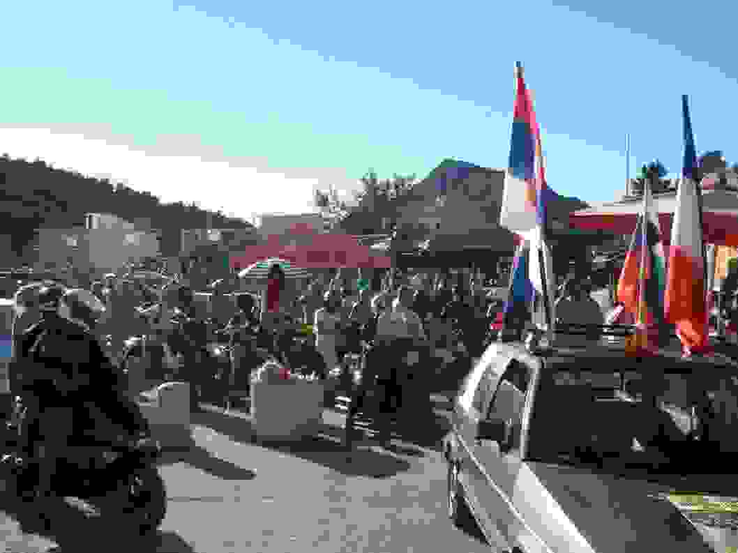 На аутомобилу окићеном југословенским тробојкама и заставама држава насталих распадом СФРЈ који је предводио мотористе у дефилеу, ни ове године није било црногорског државног обиљежја. Иван Занковић, који је био за воланом аута са заставама каже да ту нема ничега спорног, јер су, вели, тробојке заштитни знак моторијаде.