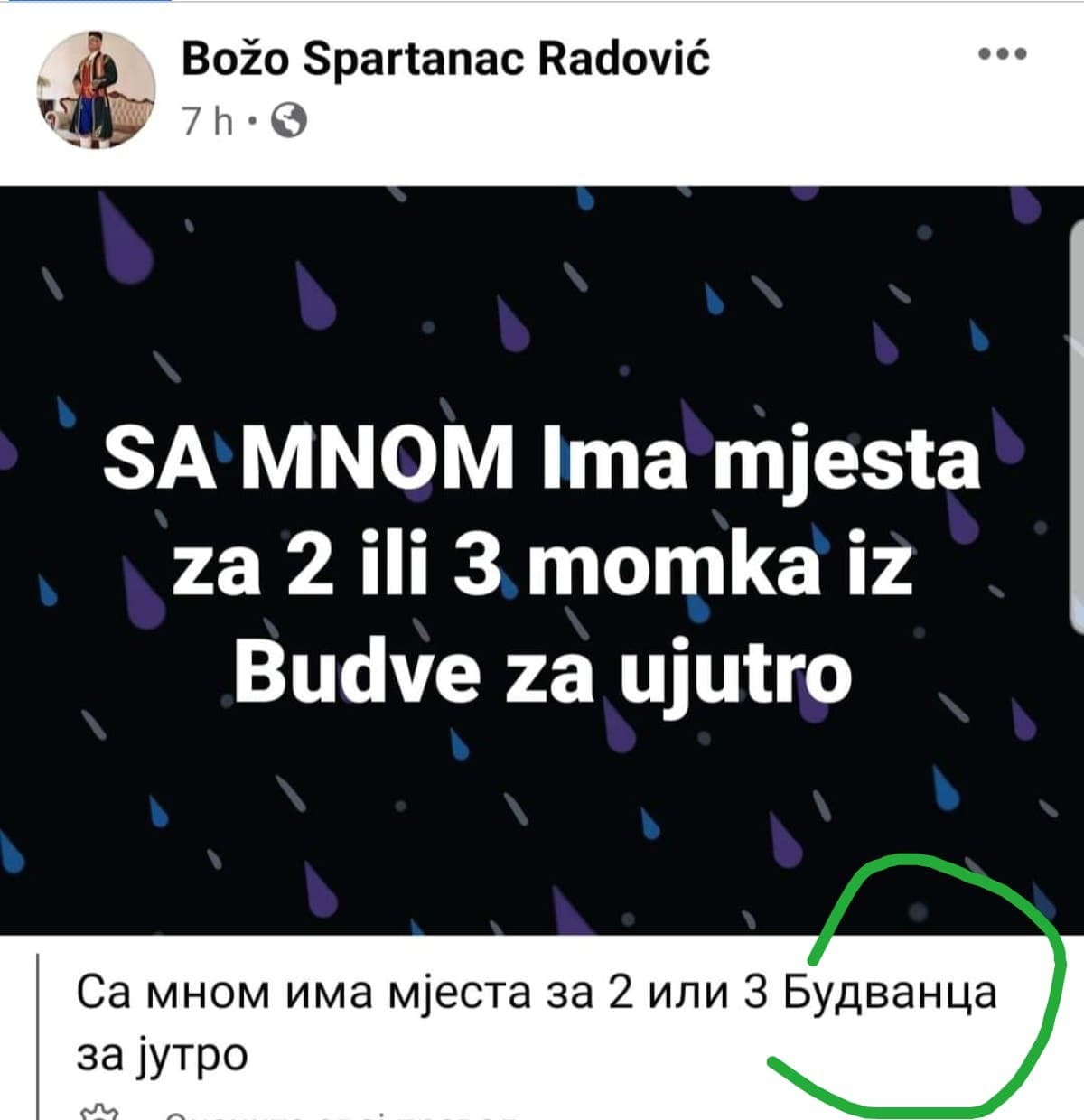 Мреже Божо Спартанац окупља „Будванце“ 5 година ИН4С извор: Божо Спартанац Радовић/Фејсбук Придружите нам се на Вајберу и Телеграму: Tags: Божо Спартанац Будванци прослава Continue Reading Previous Окренули земљу „наглавачке“, па могу и заставу: „Патриотизам“ Миловог кума, Ратка ВујошевићаNext Ниђе небо није плаво…