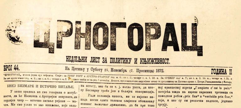 Стари цетињски лист ,,Црногорац'' 1871. г. позвао је српски народ књажевине Црне Горе да искажу своје родољубље и претплате се...