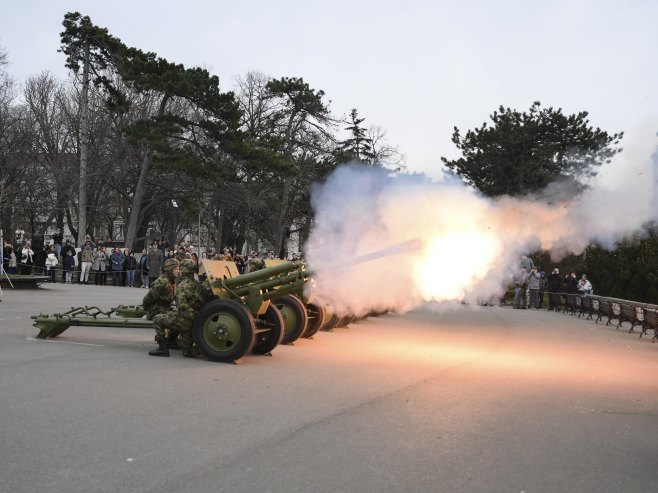Припадници Гарде Војске Србије извели су данас почасну артиљеријску паљбу са Савског платоа на Калемегдану поводом обиљежавања Дана државности Републике...