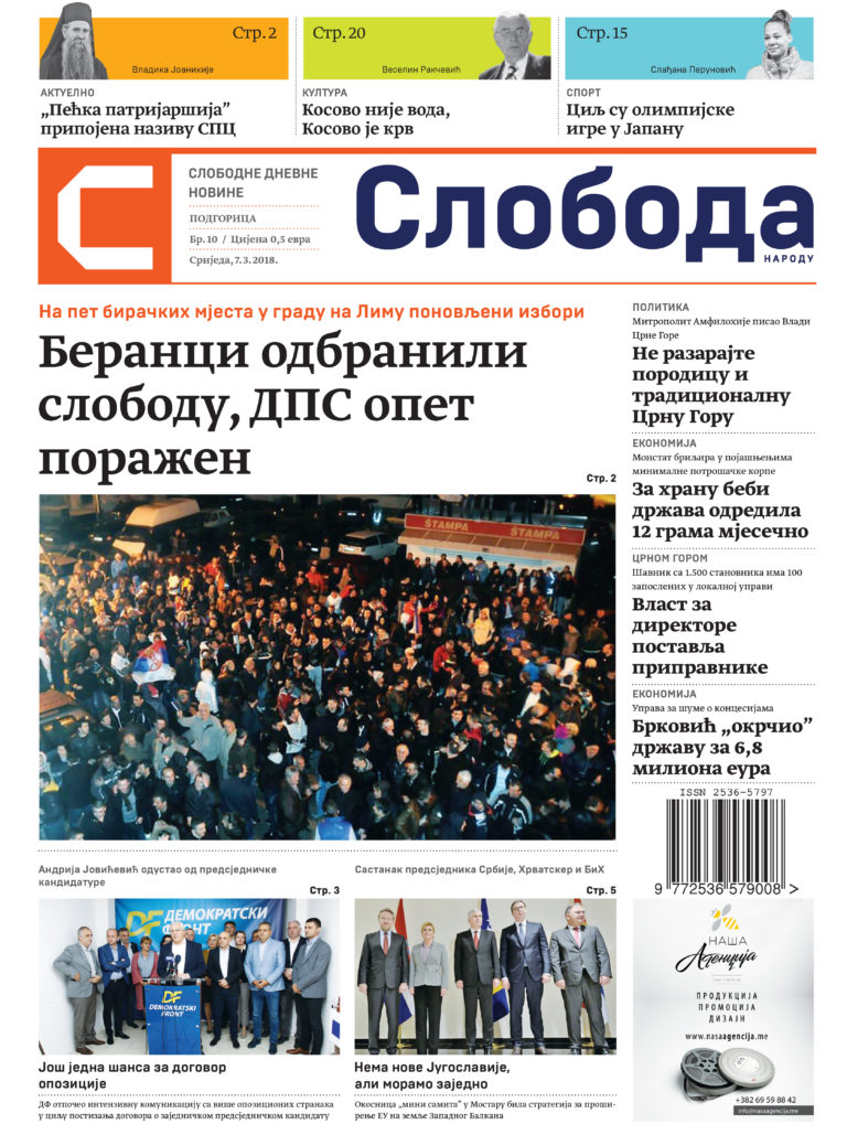 У издању дневног листа „Слобода“ за 7. март читајте: -Владика Јоаникије за “Слободу” појашњава предложене измјене устава Српске православне цркве: Пећка...