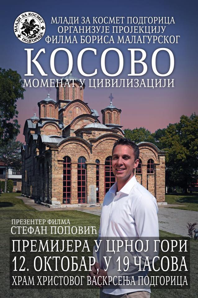 Након приказивања у Паризу и Београду филм Бориса Малагурског „Косово — моменат у цивилизацији“ биће приказан и у Подгорици. Подгоричка...
