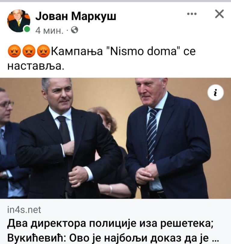 За рубрику мреже, сјајни Јован Маркуш са објавом на текст да је ухапшен још један бивши директор полиције у Црној...