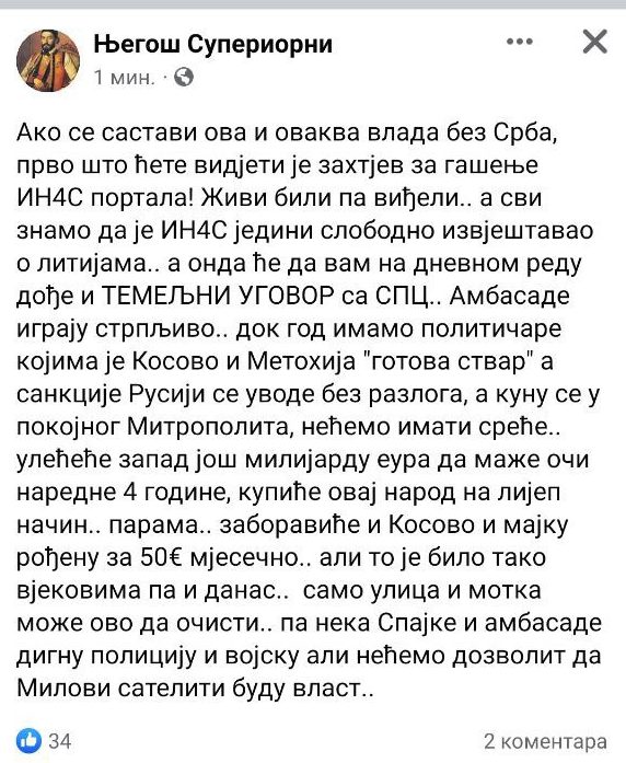 У категорији "мреже", преносимо вам сјајан статус са Фејсбука, посланика За будућност Црне Горе, и високог функционера Демократске народне партије...