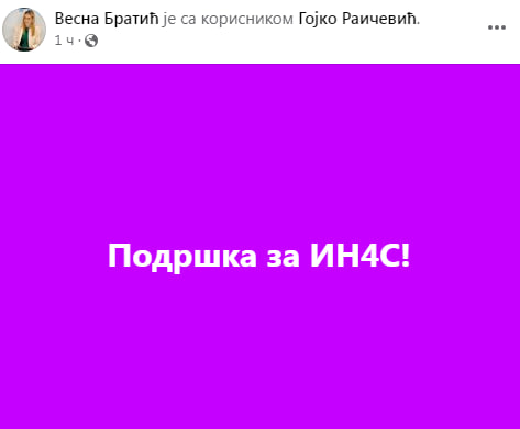Бивша министарка просвјете, науке, културе и спорта у 42. Влади Црне Горе Весна Братић пружила је подршку порталу ИН4С уреднику Гојку...