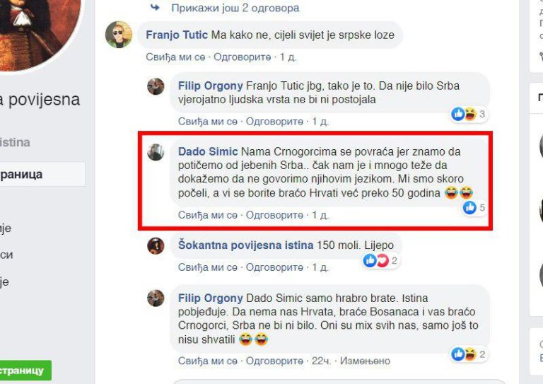 Уобичајена комуникација на страници "Шокантна повијесна истина"...