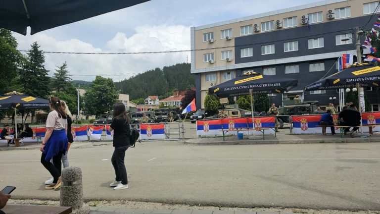 Срби су се и јутрос окупили око општинске зграде у Лепосавићу да би изразили протест због присуства нових албанских градоначелника...