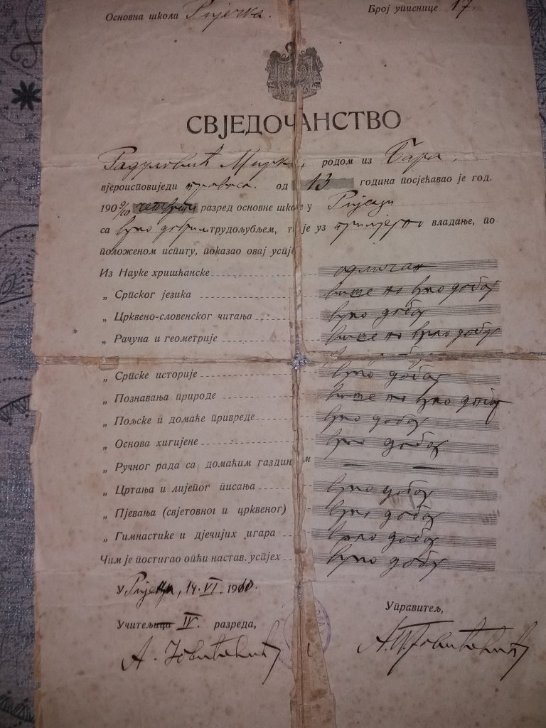 У редакцију нашег портала стигли су примјерци школских свједочанстава из 1910. и 1919. године од стране потомка некадашњег школарца Мирка...