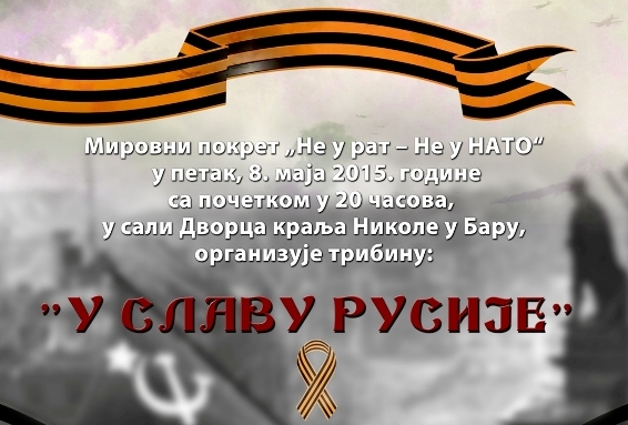 Поводом 70. годишњице од побједе над фашизмом, Мировни покрет „Не у рат – Не у НАТО“, одржаће трибину у Бару...