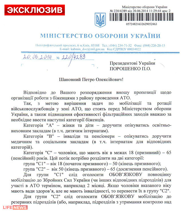 LifeNews располалаже документом који показује однос власти Украјине, на челу са Петром Порошенком према избјеглим људима са југо-истока Украјине. "Све...