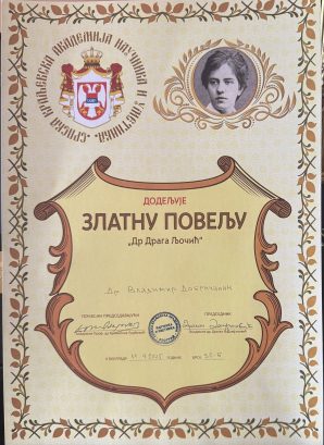 Добричанин добитник Златне плакете “Др Драга Љочић” Српске Краљевске Академије Наука и Уметности