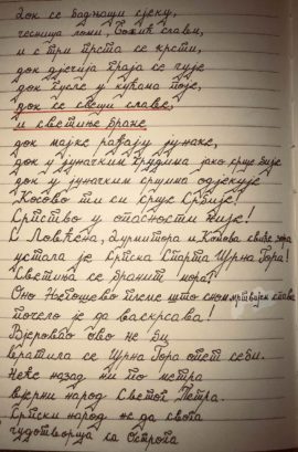 Blago tvojima koji su te naucili da ovako vezes ova slova. Ovo nije skolski zadatak.Ovako se pise srcem. Jos jednom bravo i hvala tvojoj porodici koja te je naucila pravim vrijednostima i tebi koji siris ljubav i mir u Crnoj Gori. Bravo!