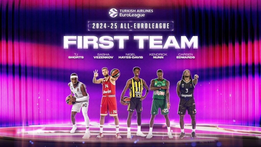 Најбољих пет играча регуларног сезона Евролиге чине: Ти Џеј Шортс (Париз), Карсен Едвардс (Бајерн), Кендрик Нан (Панатинаикос), Најџел Хејс-Дејвис (Фенербахче) и Саша Везенков (Олимпијакос).