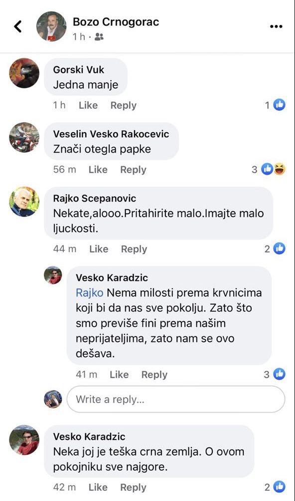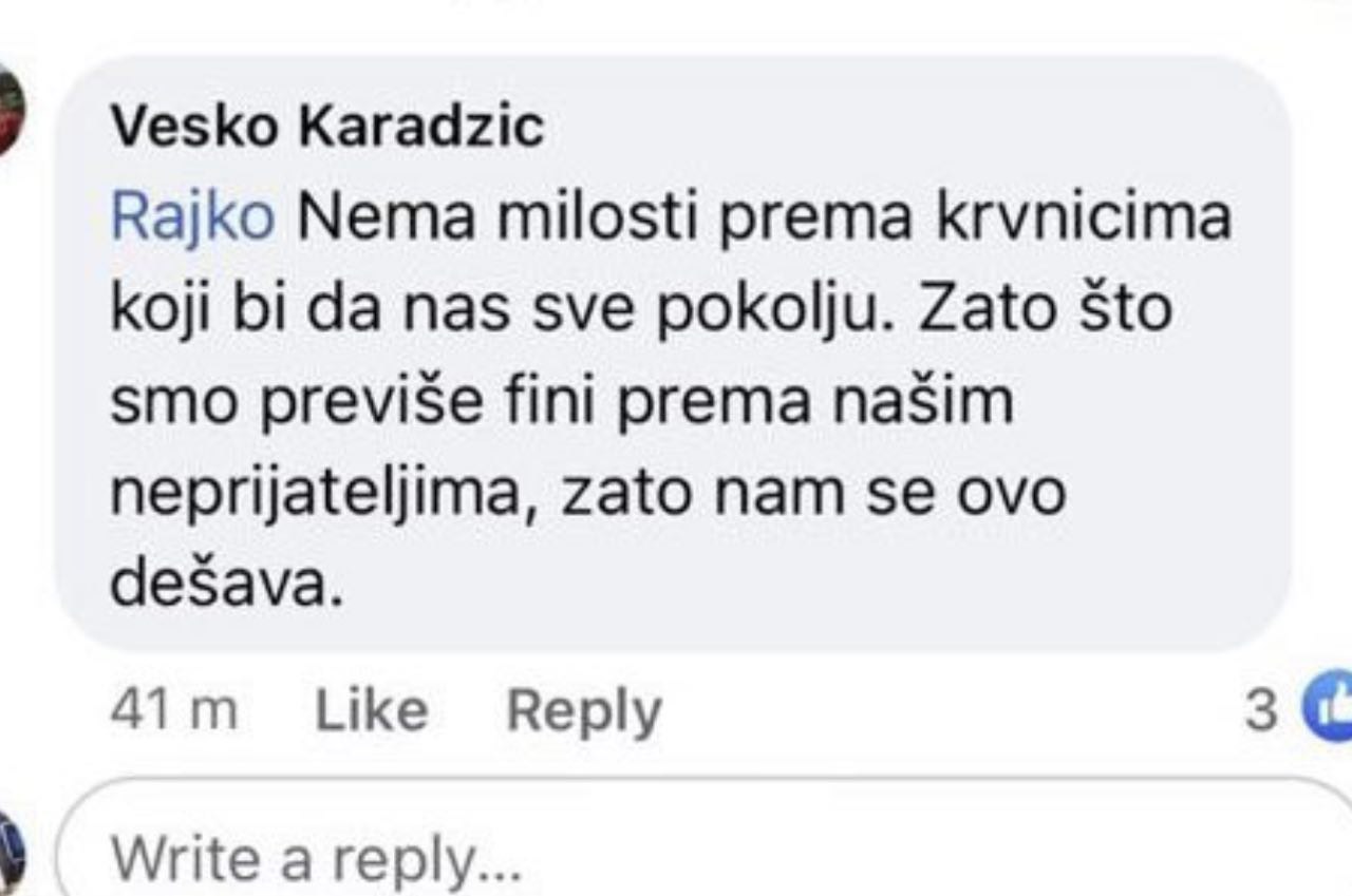 Ova stoka stvarno ne zna šta će od mrznje ,patoloskog i sizofrenicnog ludila .Da je ovo prava ,pravna drzava u kojoj finkcionise normalno i pravo sudstvo .Ta stoka koja je to izjavila na drustvenoj mreži bi odgovarala