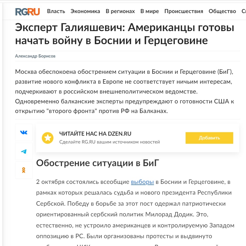 И сам Милорад Додик је уочи избора у интервјуу за Руску газету предвидио сличан развој догађаја.