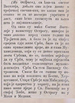 – …Но се, навијек осјећају да су Срби, чему је најбоља свједочба била ваздашње полазиштво мухамедовскијех Срба Светом Василију Острошком, објашњава ,,Глас Црногорца“.