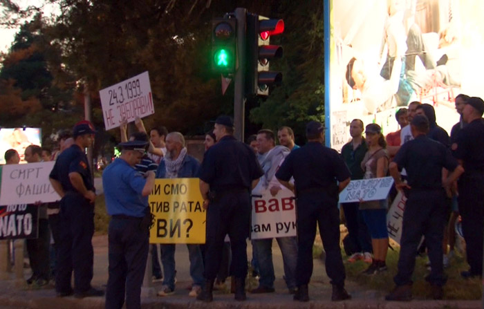 Спријечени од бројних службеника јавне безбједности и посебне полицијске јединице, демонстранти су се задржали на тротоару раскрснице куда је прошла колона са гостом. Уз звуке бубња, пиштаљки скандирало се „фашисти, фашисти“ и „Русија, Русија“.