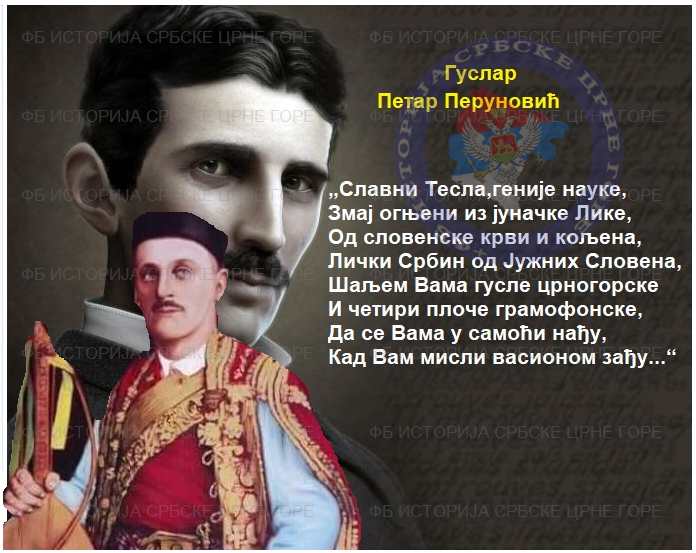 Гуслар Петар Перуновић послат од Владе Црне Горе 1912: Славном Тесли генију науке, Личком Србину шаље гусле црногорске