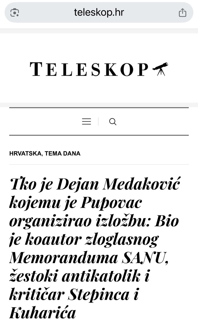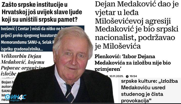 У својој хистеричној реторици, ти медији су га назвали „опскурним великосрпским фашистом“, „генералним тајником злочиначке организације“, „ратним хушкачем“, па чак и човјеком чији је рад „груба провокација и срамота за Загреб“. Један портал је отишао најдаље назвавши Медаковића „моралним братом Милошевића“, док је други оцвилио да је „истовремено интелектуалац и идеолог великосрпске агресије“. Ове формулације, које више личе на уличне графите него на новинарство, говоре много о њиховим ауторима — а ништа о Медаковићу.