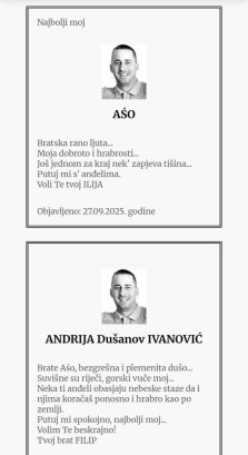 „Брате наш, Андрија огријешише се грешници, невину душу ти узеше, а ране вјечне оставише у нашим срцима, да вјечно боле и никад не прођу. Бобан Сјеколоћа са породицом“ – гласи читуља за Андрију Ивановића, док за Мила Беладу гласи: „Последњи поздрав Милу, част је била имати друга и брата као тебе, чуваћемо те од заборава.“