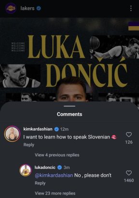 На мрежама кружи и скриншот коментара Ким Кардашијан поред објаве Лејкерса, у ком стоји: Желим да научим словеначки“, а наводно је Дончићев одговор био: „Не, молим те, немој“.
