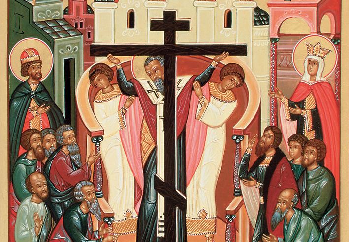 Царица Јелена у Јерусалиму, сазнавши где је закопан Часни Крст, поруши Венерин храм и испод њега нађе 3 крста. Тада јој патријарх Макарије рече да стави један по један на мртваца којег су проносили. Када су ставили трећи крст, мртвац оживе. Царица направи сребрни ковчег и у њега положи Часни Крст и од тада се празнује ВОЗДВИЖЕЊЕ (Подизање) Часног Крста. Она са собом понесе само дио овог Часног Крста Господњег и свете клинце, којима је Исус Христос био прикован за тај Крст, а сам Крст положи у сребрни ковчег и предаде га патријарху Макарију. Блажени цар Константин положи животворно дрво у златан ковчег, а свете клинце, царица Јелена баци у Јадранско море, а један цар укова у свој шлем, један у ђемове на узди свог коња. По повратку свете царице Јелене из Јерусалима у Византију, христољубиви цар Константин начини три велика крста, према броју јављених му у ратовима: први у Риму, други у Византији, а трећи, након побједе над Скитима на Дунаву. Он начини три крста и написа на њима: ИС ХС НИКА – Христос побјеђује. Нека је и од нас Њему част, слава и поклоњење сада и увијек и кроза све вијекове. Амин.