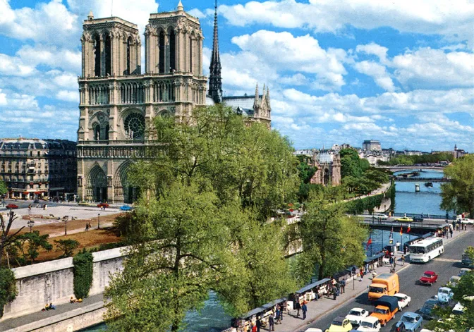 Уствари намјестило се тако да, чим изађем из стана и скренем неколико метара до угла улице која сијече моју, одмах угледам куле које су уствари звоници, торањ и кров Богородичине цркве. А да до ње доспијем, довољно је да пређем велелепни главни градски трг Отел де Вил који краси величанствена ренесансна палата у којој је париска општина, па наставим мостом Аркол преко Сене те истоименоном улицом украшеном кестеновима скоријег датума, и тако се, након седам-осам минута хода, нађем у подножју главне париске богомоље. А затим под њеним високим готским сводовима уз бруј оргуља који испуњава огромни простор храма и угледам њене витраже на којима су у стаклу осликане у јарким бојама сцене из Старог и Новог Завјета и живота светаца. А посебно три велике руже, rosaces са Христом и Богородицом у средини, западна, сјеверна и јужна од тринаест метара пречника, која се просто запали кад у њу ударе луче сунчане.