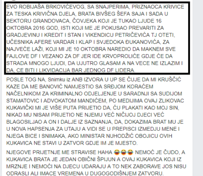 Ne znam jesi li primijetio da Lakić pokazuje dosta nekih papira koji su vezi sa ovim što on priča. Osim toga, brat Banović je uhvaćen u posjedu oružja sa snajperom, što je krivično djelo, a svi znamo čemu snajper služi, sem ako nije sa njim išao na divlje svinje. Vama se ni nacrtano ne može objasniti ako je komlikovanije od čiča Gliše.