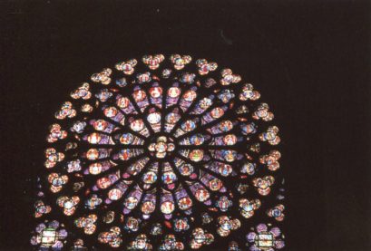 Уствари намјестило се тако да, чим изађем из стана и скренем неколико метара до угла улице која сијече моју, одмах угледам куле које су уствари звоници, торањ и кров Богородичине цркве. А да до ње доспијем, довољно је да пређем велелепни главни градски трг Отел де Вил који краси величанствена ренесансна палата у којој је париска општина, па наставим мостом Аркол преко Сене те истоименоном улицом украшеном кестеновима скоријег датума, и тако се, након седам-осам минута хода, нађем у подножју главне париске богомоље. А затим под њеним високим готским сводовима уз бруј оргуља који испуњава огромни простор храма и угледам њене витраже на којима су у стаклу осликане у јарким бојама сцене из Старог и Новог Завјета и живота светаца. А посебно три велике руже, росацес са Христом и Богородицом у средини, западна, сјеверна и јужна од тринаест метара пречника, која се просто запали кад у њу ударе луче сунчане.