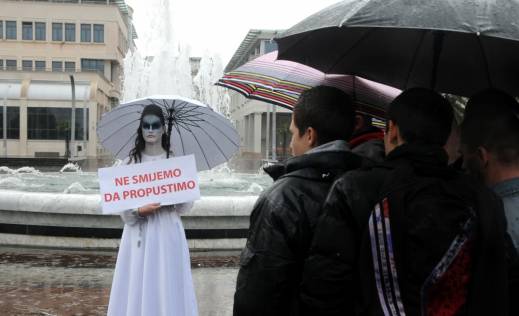 И Данас у 12.15 часова, на главном тргу у Подгорици се појавила дјевојка у истој бијелој хаљини коју је носила и претходних дана, нашминкана, са бијелим кишобраном и натписом у рукама: ,,Не смијемо да пропустимо“.