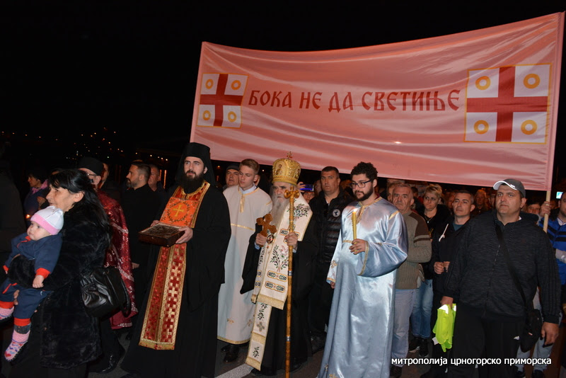 „Ја вјерујем докле се не скине то безакоње да нећете наћи ни једног ни Бокеља, ни Црногорца ни Брђанина који ће гласати за тако безакоње и за оне који тако безакоње отимања светиња устоличују први пут у историји Црне Горе. У Бога се надам да међу вама Бокељима неће бити оних који ће гласати за то безакоње и за оне који подржавају то безакоње, без обзира ко они били“, поручио је Владика Амфилохије.