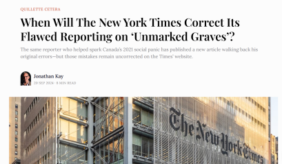 Аутор Џонатан Кеј у тексту за Quillette описује како је прича о наводним „неозначеним гробницама“ домородачке дјеце, која је 2021. године изазвала медијску и политичку хистерију у Канади, временом изгубила кредибилитет.