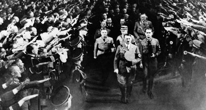 Немац, ранији Аустријанац -човек са само завршеном основном школом, Адолф Хитлер, аустријски добровољац на немачкој страни у Великом рату, је заједно са својом партијом Национално-социјалистичка немачка радничка партија (Nationalsozialistische deutsche Arbeiterpartei- NSDAP) учествовао на више избора који на почетку Адолфове политичке каријере нису доносили скоро ништа његовој партији. На гласању 1924.г. Хитлерова партија и он лично, добили само 6,5% гласова бирача. Незадовољници око Хитлера су почели да се организују, под његовим и будним очима његових најближих сарадника у батинашке групе, назване СА одреди (на немачком Sturm-Abteilung, зато СА или тачније на српском „Јуришни одреди) . Њихов задатак је био да разбијају батинањем окупљања и митниге против Хитлера и његове партије, да терају присилно људе за кога да гласају а уједно и да на пропангандним митинзима „своје“ партије штите и подржавају, како су Хитлера у међувремену називали свог „вођy“ -или на немачком „Führer-a (Firera) да би победио на гласању у Немачкој . -И то само 13 година. после оснивања те партије у Минхену, првобитног назива „Немачка радничка партија“ (Deutsche Arbeiterpartei- DAP) . Партију су основали Адолф Хитлер, Дитрих Екарт, Херман Есер, Ернст Рем (касније убијен по наредби Хитлера) и Готлиб Федер. Читаву тарапану у „полувременима“ између гласања, директно и индиректно је подржавао и шеф државе, Хинденбург. Хитлерови јуришници и батинаши су одиграли посебну улогу у пребијању и злостављању Јевреја, уништавања њихове имовине, палења синагога итд. Касније је те батинаше наследила нова јединица есесоваца. Чињенице су показале да ни држава ни председник Хинденбург нису реаговали против Хитлерових бтинаша, обучених у униформе браон боје, који се, као што се види на слици у прилогу, често као заштитници стварања неког новог поретка у послератној Немачкој наступали заједно са регуларном полицијом.