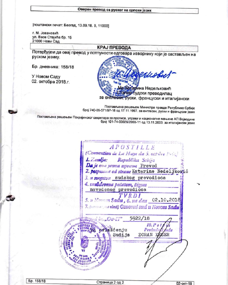 У документу који је адвокат Јовановић предао Судском вијећу, недвосмислени се потврђује да је Синђелић лагао да је 2016. године био у Русији.