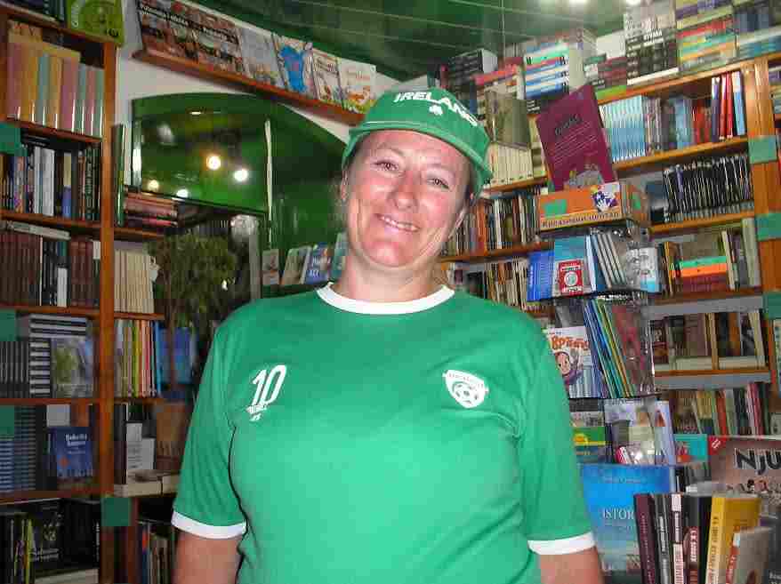 Прича се повела надугачко, како то већ каткада зна да буде ужанца у бутиги са зеленим шкурима, о најљепшим мјестима на свијету, о томе што је фетива Кензи данас ручала, што планира сутра, зашто мисли да су Малдиви прелијепи али и зашто зазире од муслимана (који су на Малдивима већина), које јој је омиљено јело (ирска чорба), како себи може да приушти толика путовања (она је DJ, која на ноћ зна да убере и 1000 евра, а кад неко прави Божићни партy, браво им га браво, тада зна да заради и преко 3000), о томе колика је тренутна температура у Ирској, о односима између Ирске и Енглеске, причала је Кензи на гејлику, језику Ираца, казала како је слободна јер нема кредита, да није хтјела да рађа дјецу да се не би мучила у оваквом свијету, како планира да иде у Требиње и како ће тамо послушати савјет потекао из Књижаре Со и пробати ћевапе, али не и пити пиво јер не пије годинама, а имала је ужанцу, као DЈ, тако да има још има алкохола у крви…