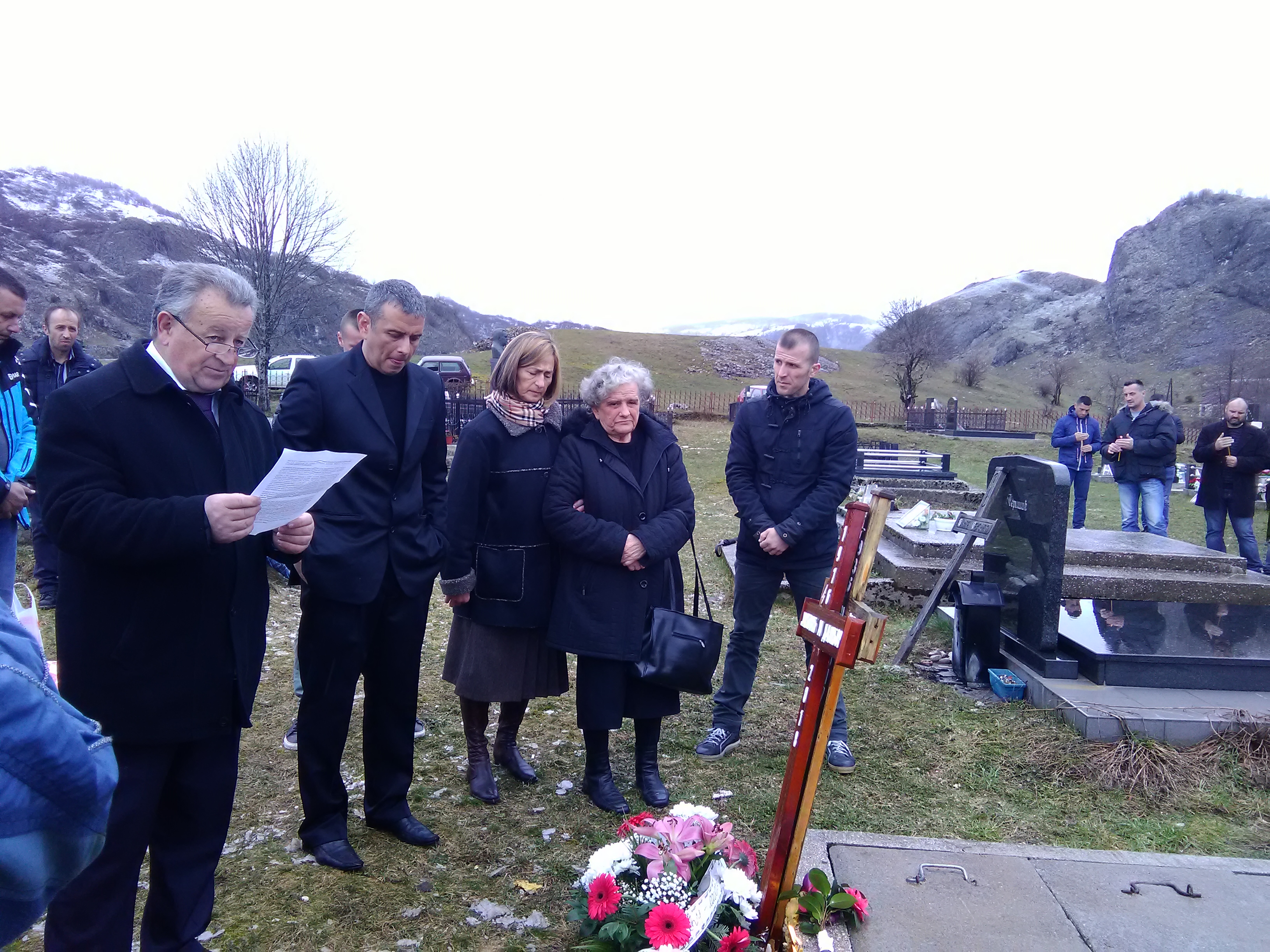 Predsjednik Udruženja boraca Radan Nikolić nad humkom Dalibora Jaukovića na 40-dnevnom pomenu 2018. godine