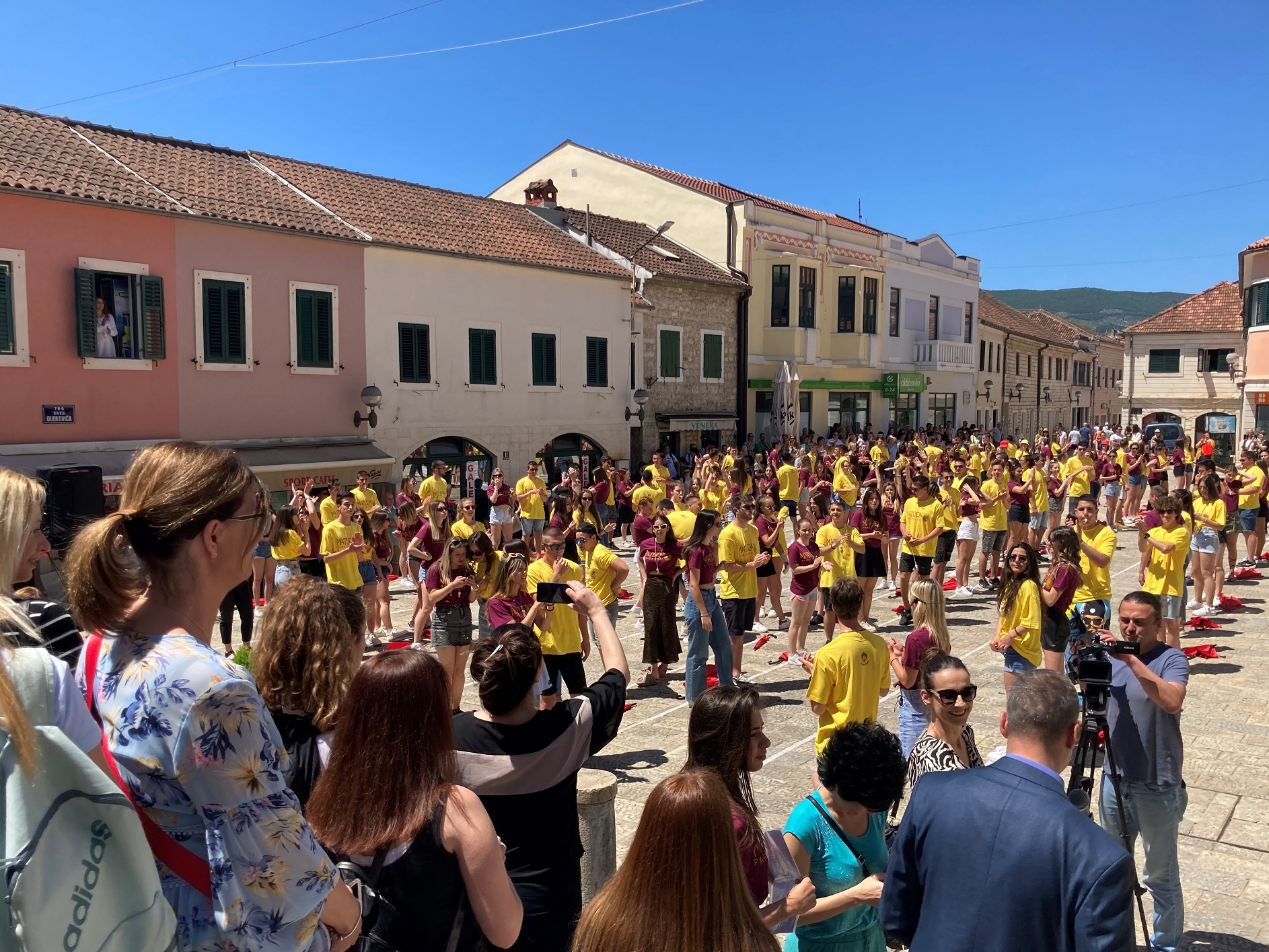 Матуранти средње школе „Иван Горан Ковачић“, њих 180, данас су у центру Херцег Новог плесали квадрил. Тачно у подне, уз звуке Штраусове опере „Слијепи миш“, они су са вршњацима из других европских земаља покушали да оборе Гинисов рекорд у најмасовнијем синхронизованом плесу.