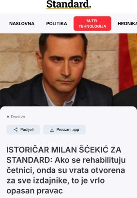 У новом нападу на историјску истину и здрав разум, портал Стандард објавио је интервју са “хисторичарем” са изразито тенденциозним тумачењем прошлости Миланом Шћекићем. Са друге стране, у улози „новинара“ – С. Растодер.
