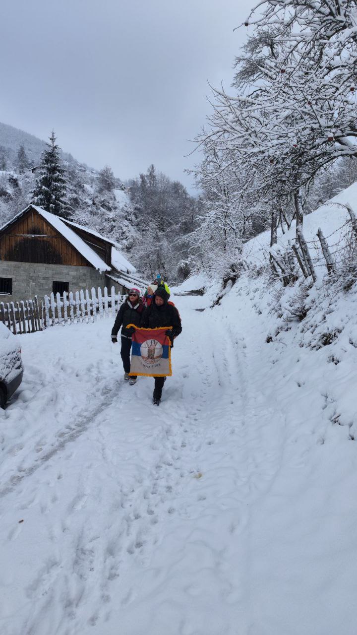 У свитање крећемо нас деветоро серпентинама из Тамаре за Коплик. Наташа Станковић Недељковић, докторка из Алексинца. Нела Петровић, Милан Лапчевић, Бојан Раденковић, Бобан Стојковић, Милан Гроздановић, Раде Кнежевић. Носимо српске заставе. Ја крст са Свете Горе, изливен поводом хиљаду година руског монаштва на Светој Гори.