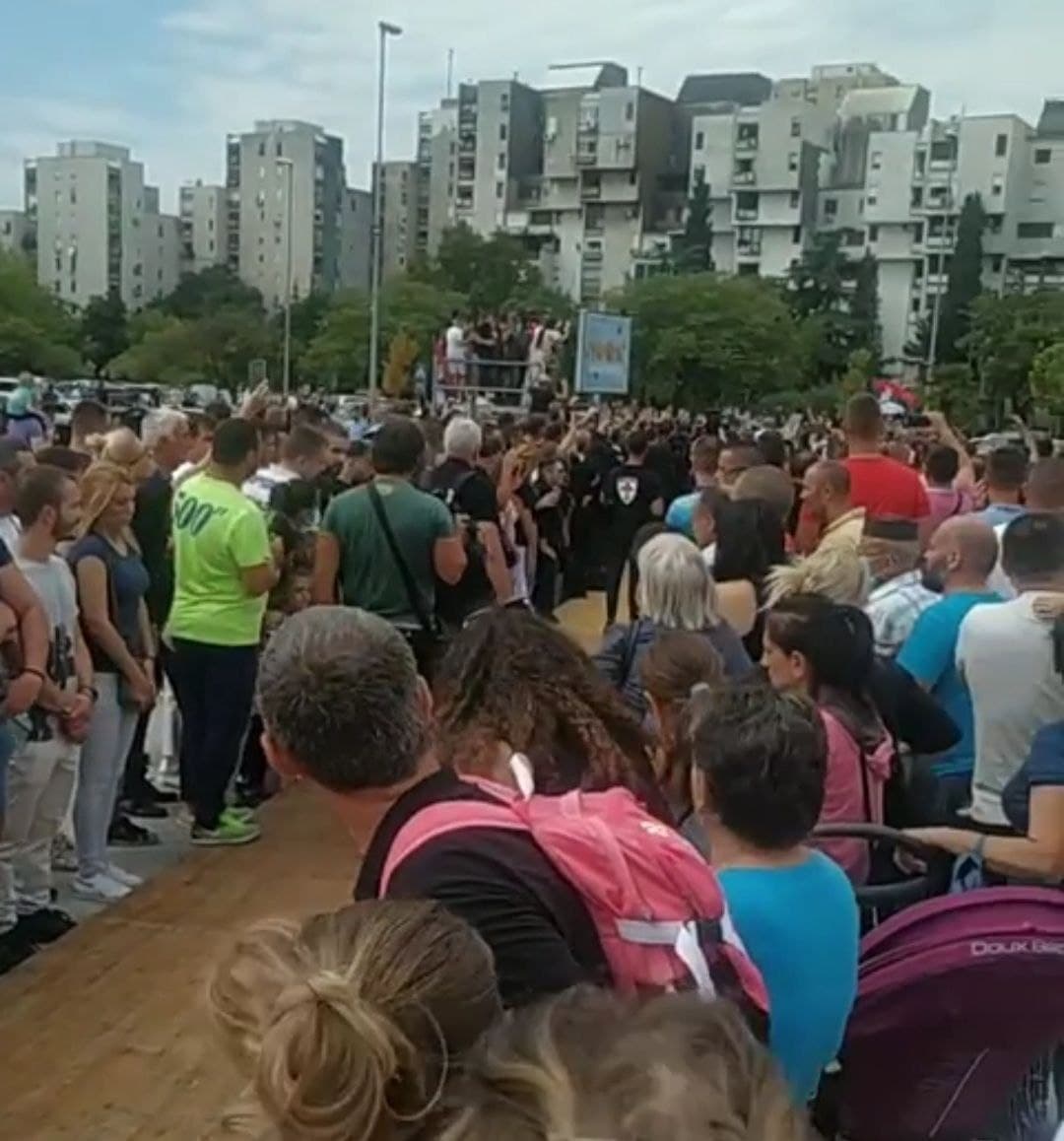 Народ се од јутрос окупља испред Храма Христовог васкрсења у Подгорици, а одржана је и слуба након које је бесједио владика Григорије.