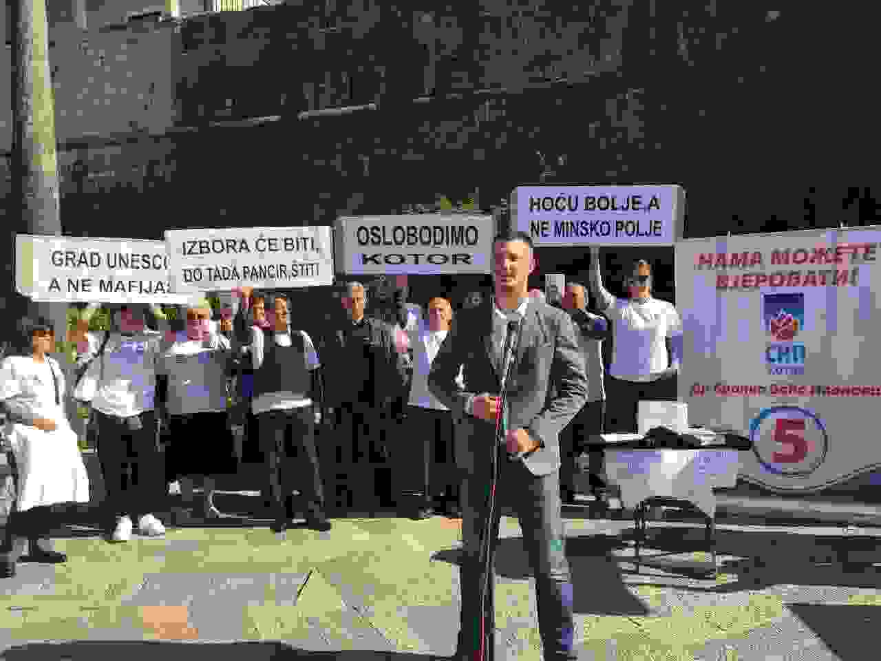На транспарентима је писало: „Ослободимо Котор“, „Избора ће бити, до тад панцир штити“, „Град УНЕСЦО-а, а не мафијаша“, „Ке нова? Нова власт“, „СНП“, „Хоћемо боље, а не минско поље“.