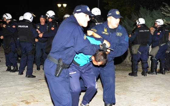 Пар дана послије посјете Јенса Столтенберга генералног секретара НАТО алијансе и 28 амбасадора НАТО чланица Црној Гори, Подгорица, главни град земље кандидата постала је поприште бруталне НАТО кампање коју црногорска власт убрзано уводи у финиш. Доказујући да је спремна за НАТО савез црногорска полиција ухапсила је и у марици пребила предсједника мировног покрета „Не у рат, не у Нато“, оборила на асфалт предсједника „Покрета за неутралност“, ставила му лисице на руке и одвела га у затвор. Полиција није презала да нанесе физичке повреде потпредсједнику Скупштине Црне Горе и посланицима који су мирно и по закону данима протестовали тражећи слободне изборе. Противно закону и Уставу полиција је ухапсила и посланике. Осим над посланицима који имају имунитет и представљају глас народа полиција је извршила насиље и над народом. Шок бомбама и сузавцем напала је грађане који су подржавали захтјеве за слободним изборима …