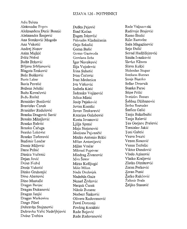 Ko su ovi što su ovo potpisali, intelektulci-ko im je dao bilo kakvo pravo da prde po FBiH i RS (BiH), koga oni prestavljaju,elitu ( neko bi reka)-čiju?Skupila se bagra s koca i konopca i proglasili sebe za neku elitu i daju sebi pravo da rada šta hoće (pazi m..a), a u svojoj kući ništa nemogu rešiti i niko ih nepita nizašta pa našli mešetarit po tudjim dvorištima…Ovima motiku treba dati da kopaju a ne da mlate praznu slamu, a nekima i metlu da malo polete…E MOJA ELITO POZDRAVLJA VAS TITOOOOO…