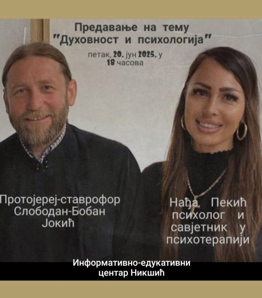 У Информативно-едукативном центру Никшић, у петак 20. јуна 2025. године, са почетком у 18 часова, биће одржано предавање на веома актуелну и све више тражену тему — „Духовност и психологија“.